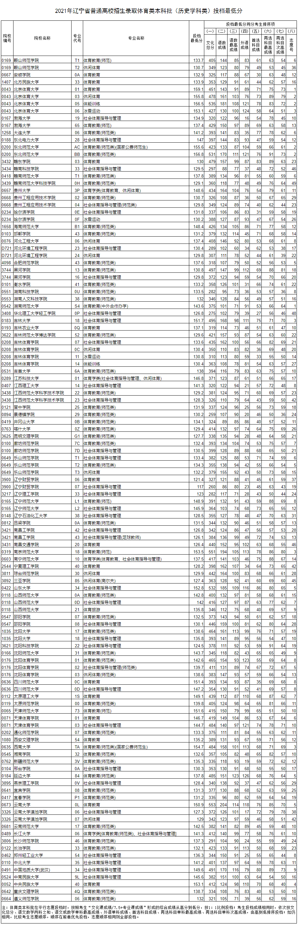 2021体育类历史录取分数线