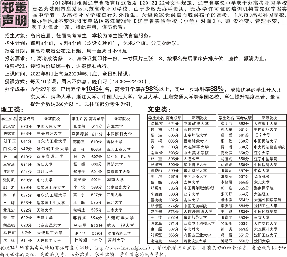 (风范)辽宁省高考补习学校
